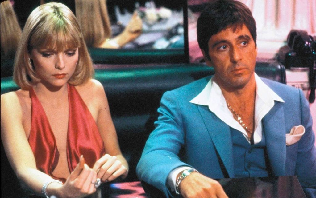 È una mimica estrema la sua, il sorriso accattivate, l’accento marcato e i suoi movimenti tesi, nervosi e scattosi. Colmi di una violenza parzialmente sopita, ma pronta a esplodere in qualsiasi momento. E il merito di Al Pacino è proprio quello: il saper immergere le vicende in un alone di folle corsa al potere. “The World Is Yours – Il mondo è tuo”. Ma che prezzo ha il potere? È una sanguinosa spirale di pacchiana e sfarzosa violenza. Una rabbia animata da una cupa determinazione che lo porterà a perdere definitivamente i suoi affetti e ritrovarsi irrimediabilmente solo. Scarface è una feroce satira al mondo di una cultura avida e sgargiante. Al desiderio del lusso sfranato ad ogni costo. Montana vuole tutto e lo vuole subito. Soldi, potere, sfarzo ed Elvira: la donna che ne cattura il cuore al primo sguardo. Figura di grande fascino ma triste, insoddisfatta e anch’essa votata all’autodistruzione e che ha le fattezze di una Michelle Pfeiffer alla sua prima grande prova attoriale.