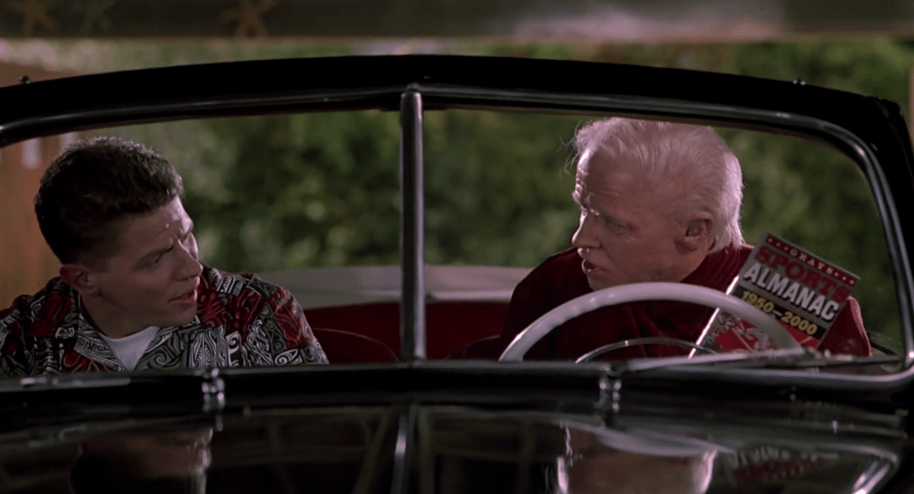 Il film non è una profezia ma una vera e propria satira in cui l’America si guarda allo specchio senza riconoscersi e senza capire quanto l’immagine riflessa sia grottesca. L’universo distorto governato da Biff Tannen è un’iperbole del capitalismo americano: un mondo in cui l’ego diventa legge e il denaro la misura di ogni valore. Tutto è veloce, luminoso, rumoroso, e proprio per questo, privo di senso. Non ci dice “come sarà il mondo”, ma “cosa stiamo diventando”. Quel Biff arrogante, arricchito, biondo platino, circondato da lusso e servilismo, non è solo un villain: è la caricatura, e probabilmente l’anticipazione, dell’era Donald Trump. Non tanto per la somiglianza estetica, quanto per la filosofia che incarna: l’avidità come virtù nazionale e la ricchezza come sinonimo di potere morale.