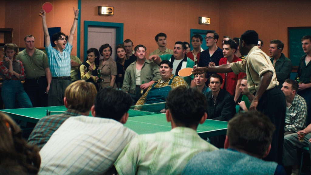La premessa è questa, e ti rimbomba in testa come un’eco. Marty corre, lotta, non si ferma mai. Non tanto per la voglia di restare impresso nella mente di tutti ma per essere il migliore. Adesso e per sempre, sempre al massimo. E il film sembra nascere proprio da questa urgenza, dal desiderio di fissarsi nell’immaginario come qualcosa di definitivo o irrinunciabile. Il problema è che più il film cerca l’eternità, più resta intrappolato nel presente. Nel rumore, nell’hype, nella necessità di essere percepito come importante ancora prima di esserlo davvero. Perché mentre lui corre, è tutto il mondo intorno a metterlo sotto una lente già satura di attese.